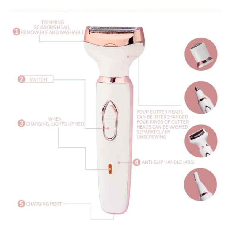 DEPILADORA ELÉCTRICA 4 EN 1 RECARGABLE - ¡LISTA PARA ENVÍO!