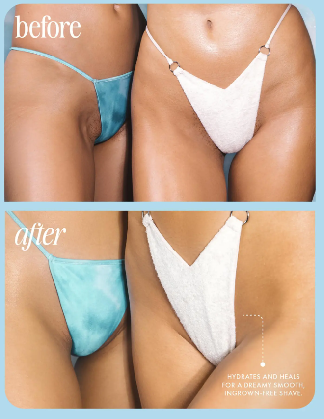 Perfecto para el cuerpo y el rostro: úselo después del afeitado en cualquier área sensible: línea del bikini, piernas, axilas o incluso para calmar la piel del rostro después del afeitado (sí, ¡es ideal para todo tipo de cabello!).